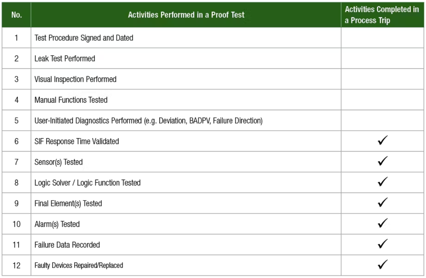 If the process trip takes place within a predetermined maximum time window, the end user may choose to leverage the process trip as a proof test by completing steps one through five in Figure 2, which are usually not completed in a process trip. The next scheduled proof test can then be canceled. According to the Norwegian Oil Industry Association, the maximum time window should be the last half of the current proof test interval.