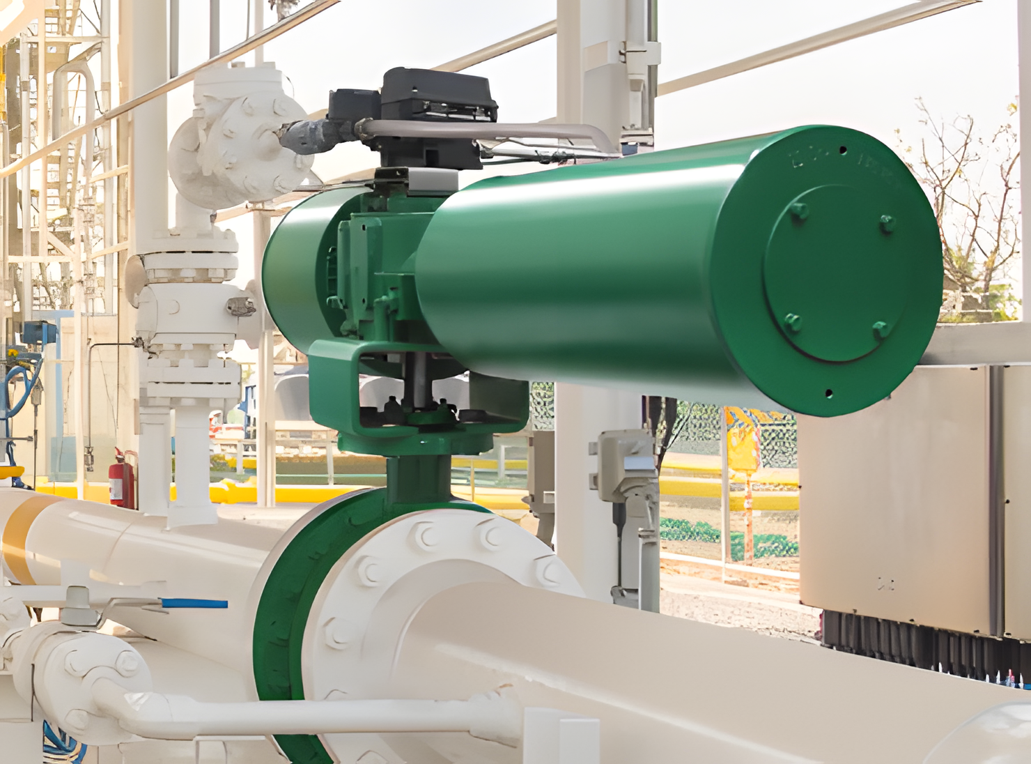 Figure 1. This Fisher Triple Offset emergency shutdown valve is activated to shut down a process.