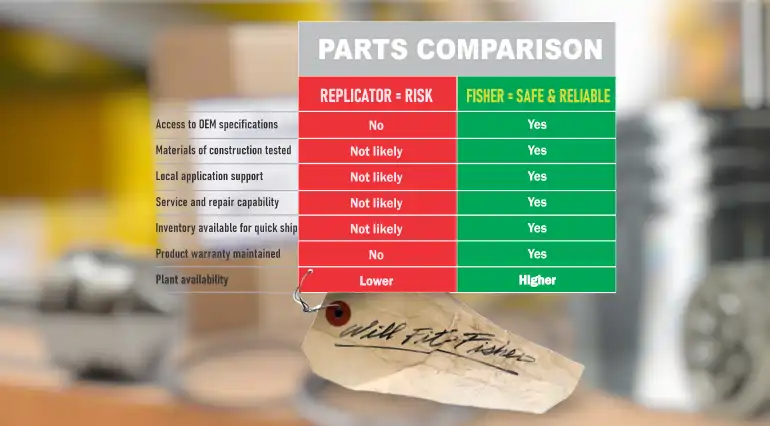 Your plant’s safety and integrity depend on the performance of your control valves. That’s why you need Genuine Fisher OEM parts, the only parts that are designed, tested, and certified by Fisher Controls, the world leader in control valve technology. With Genuine Fisher Spare, you can enjoy the following benefits: