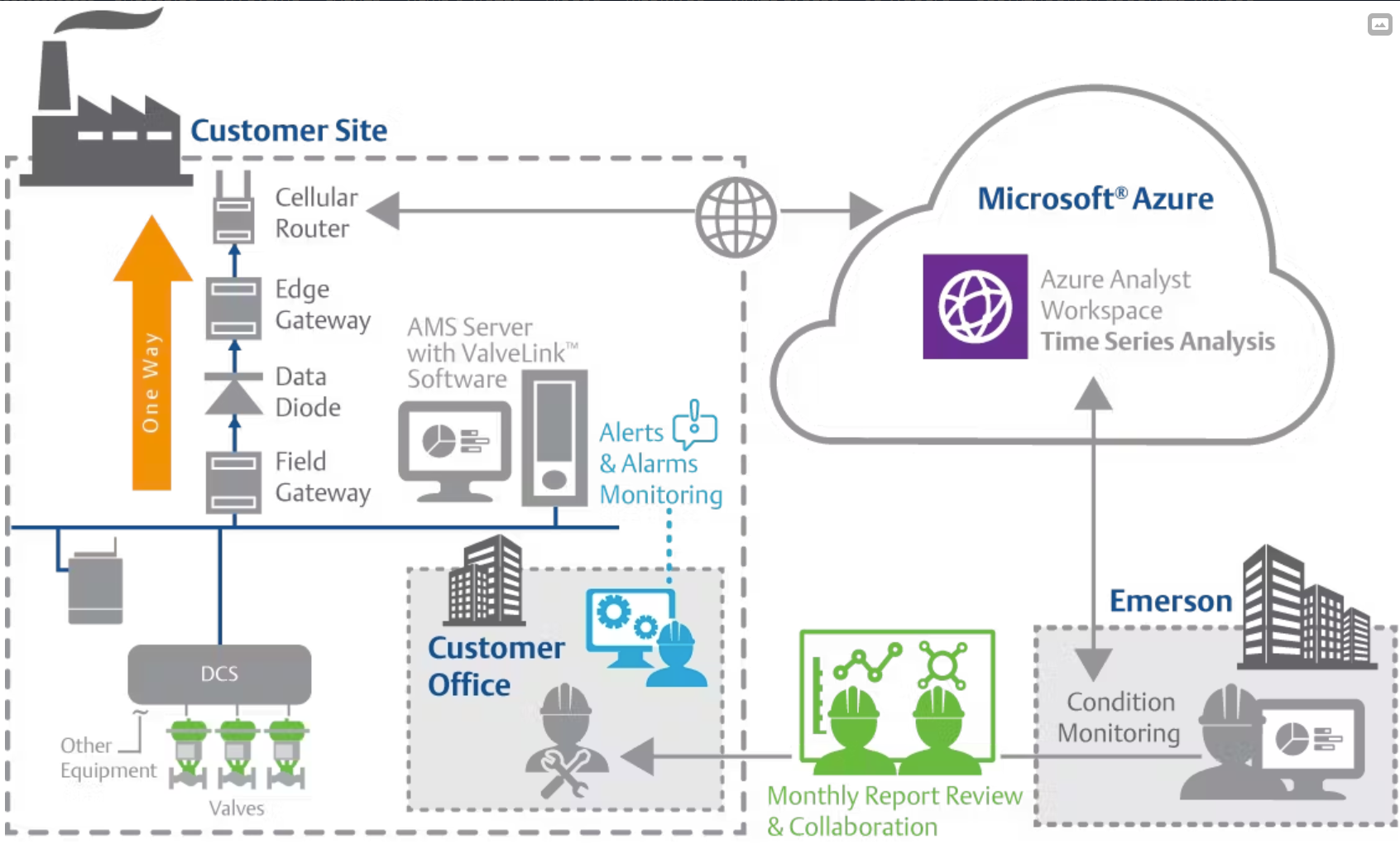 Figure 3: When a plant lacks the proper knowledge or resources, critical valve data can be securely transferred to remote experts for continuous monitoring.