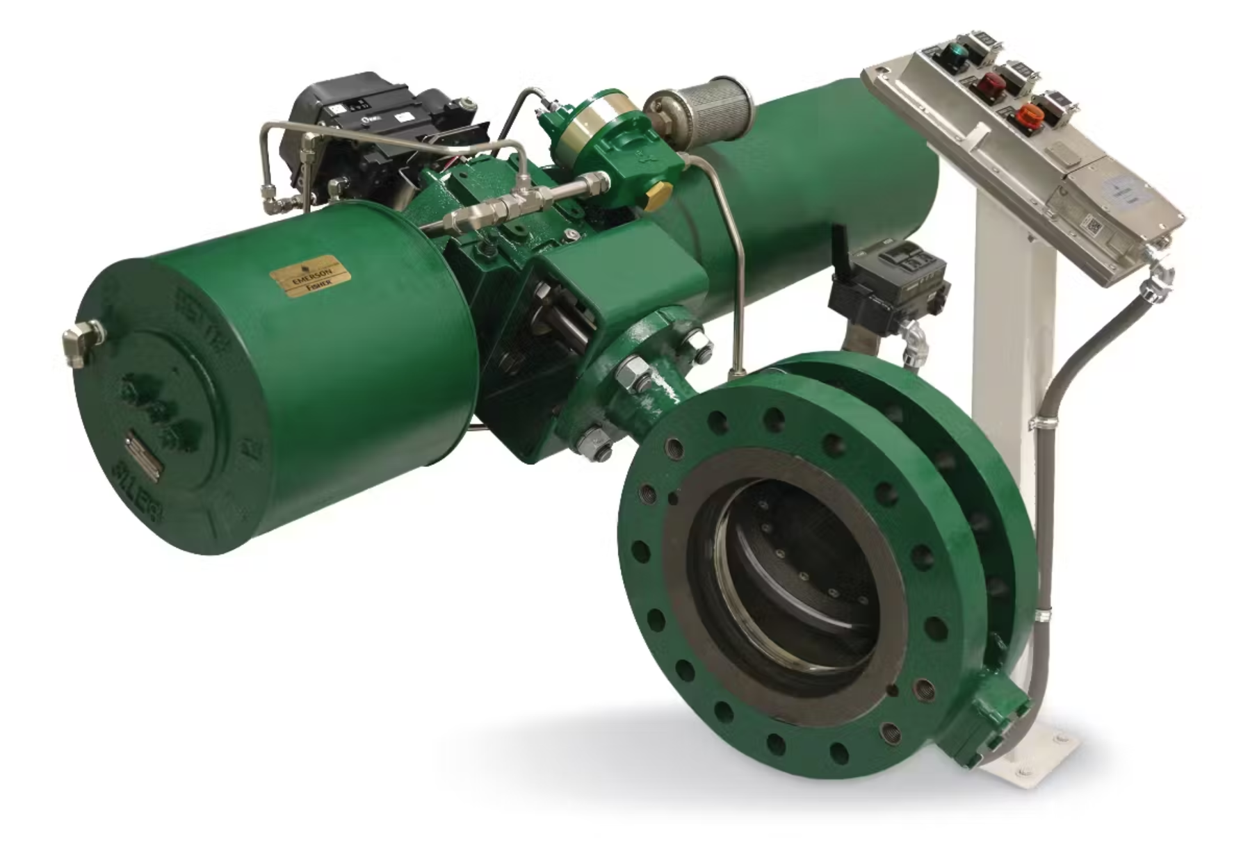 Figure 1. This Fisher Triple Offset emergency shutdown valve is activated to shut down a process.